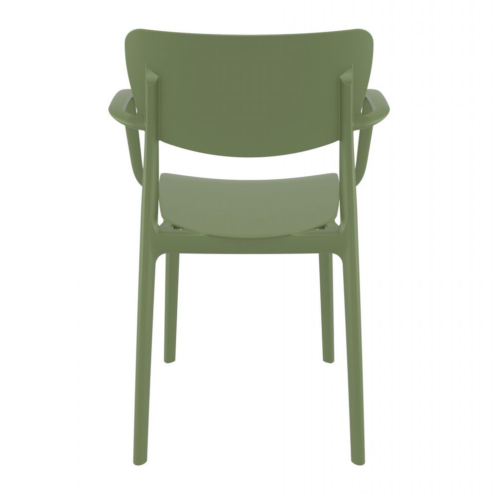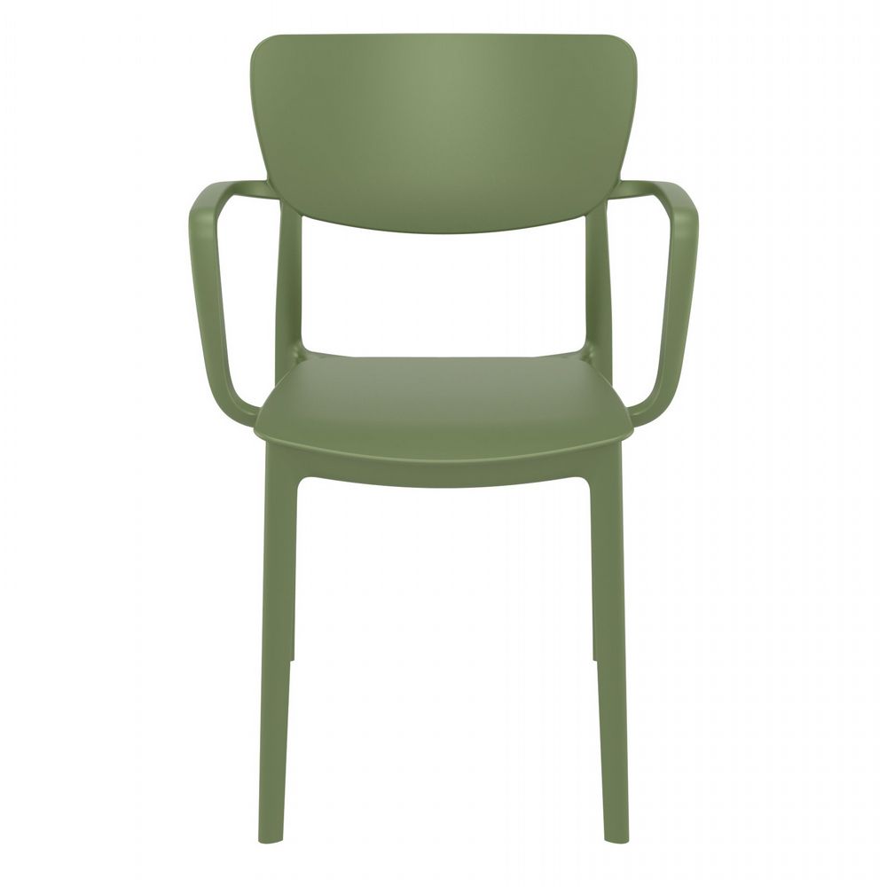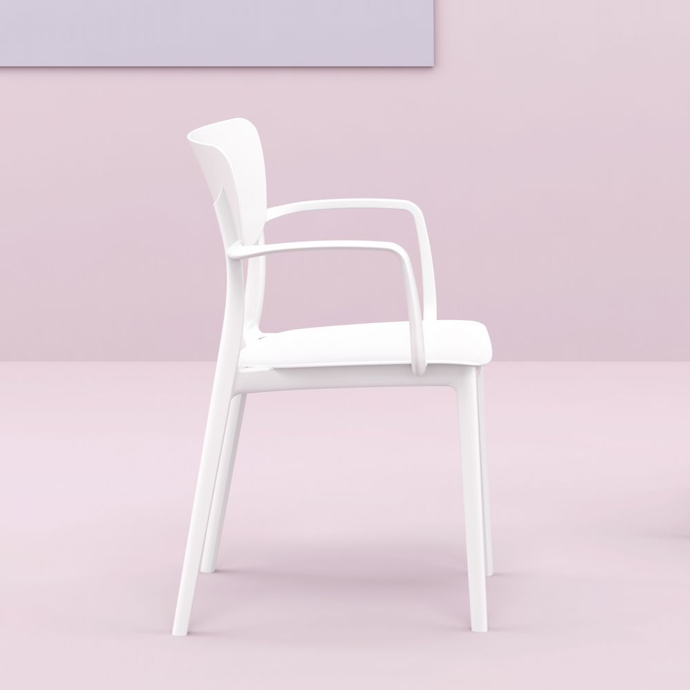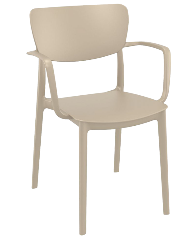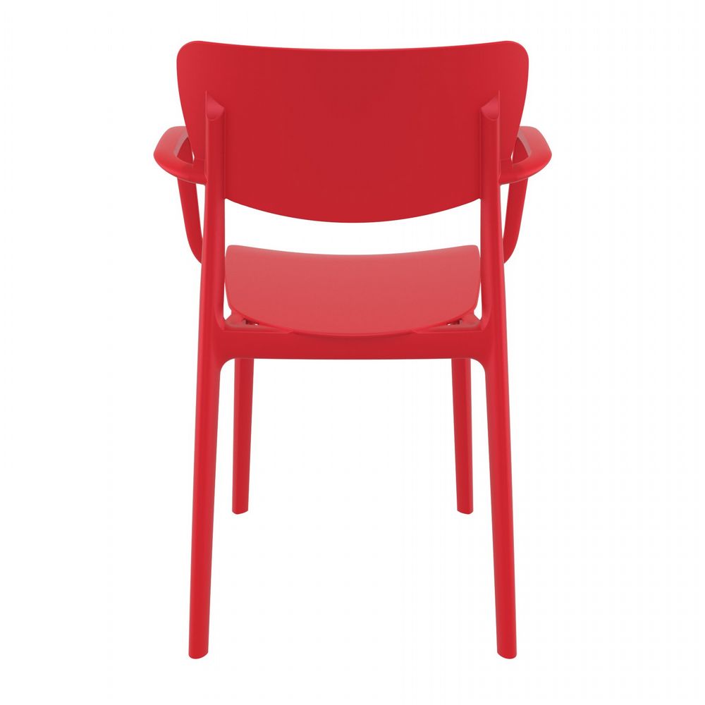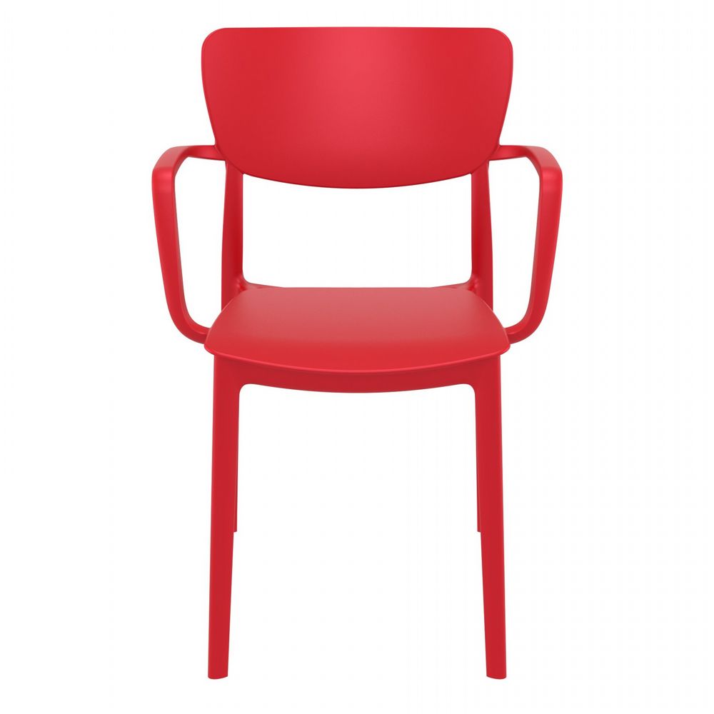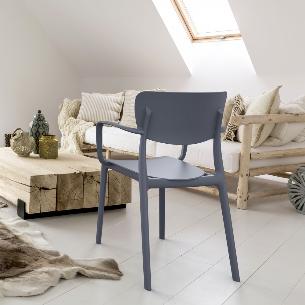 This polypropylene arm chair is built for 100% outdoor use, with weather-proof materials and crafted from a single mold.  No maintenance necessary! This chair is great for indoors too!