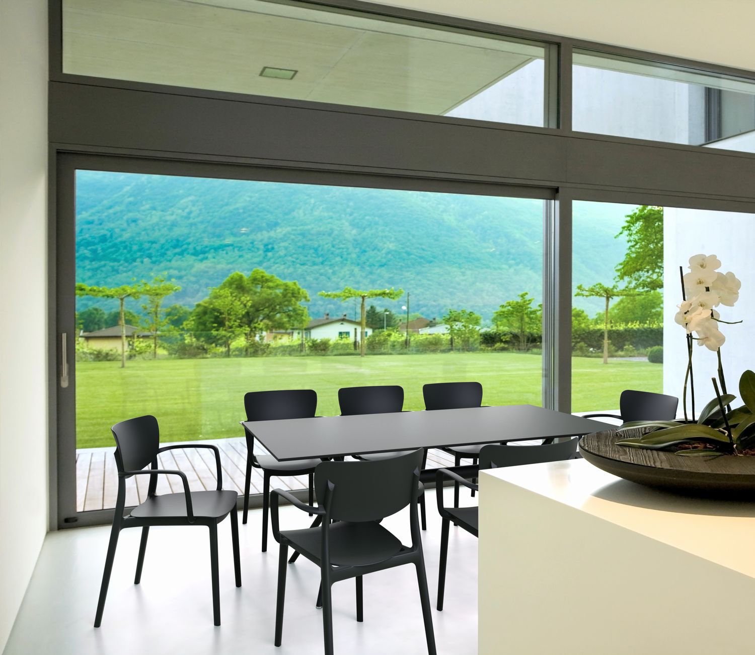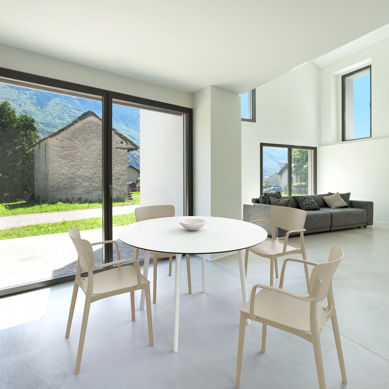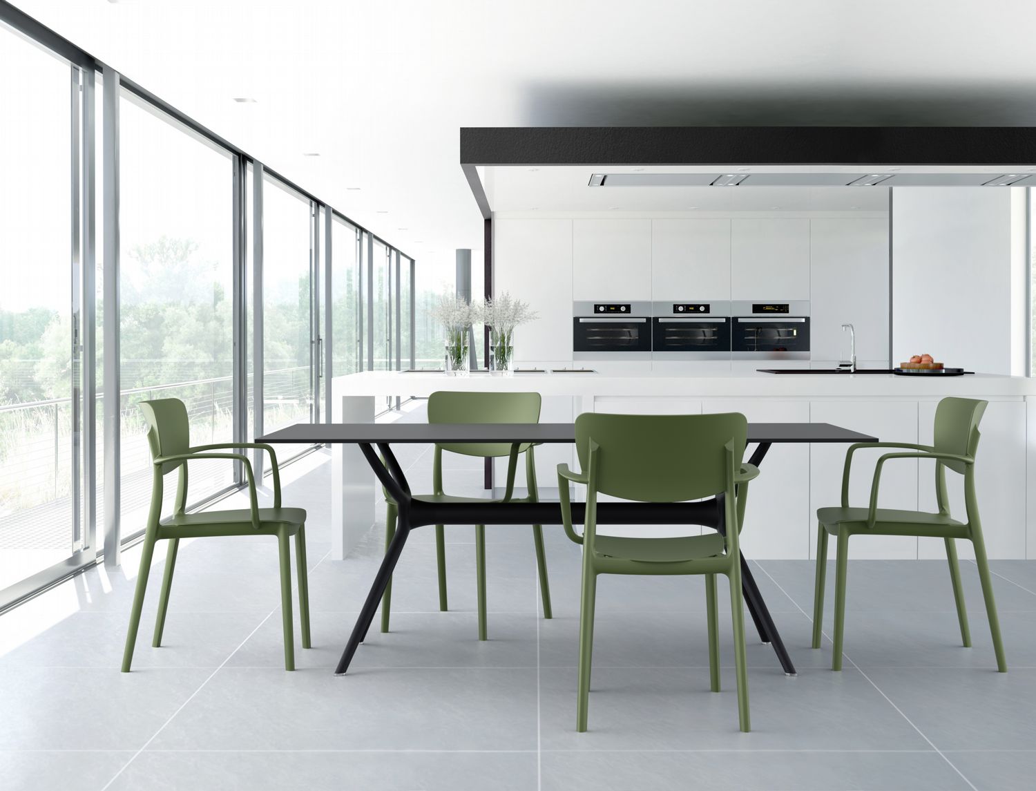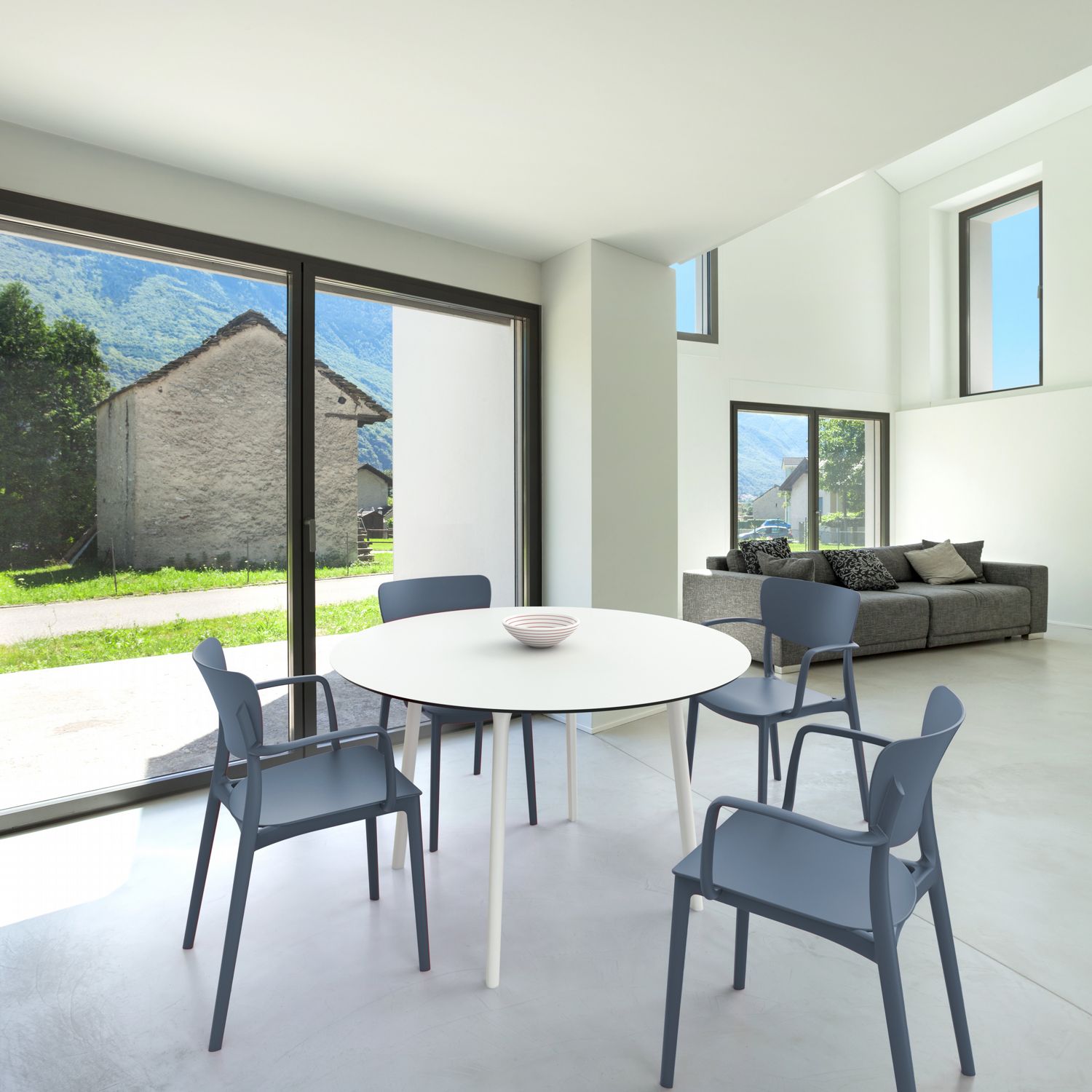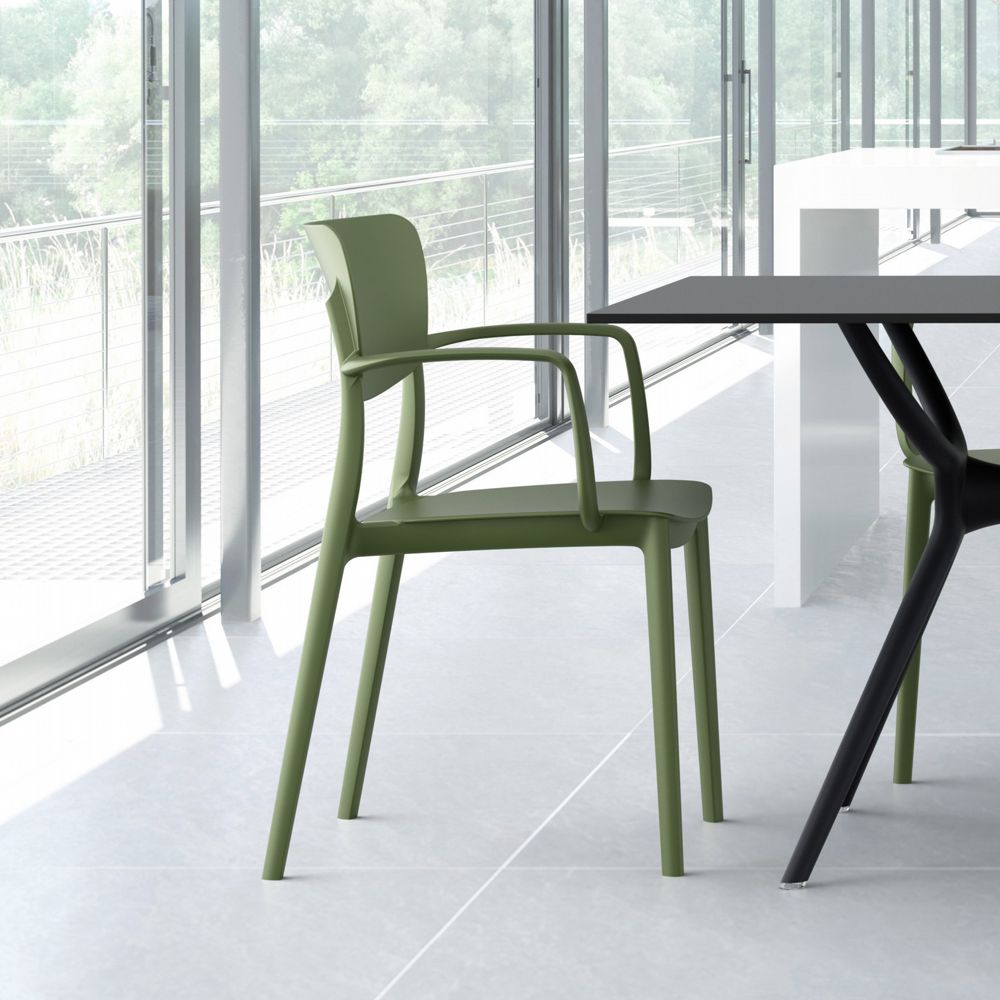 This polypropylene arm chair is built for 100% outdoor use, with weather-proof materials and crafted from a single mold.  No maintenance necessary! This chair is great for indoors too!